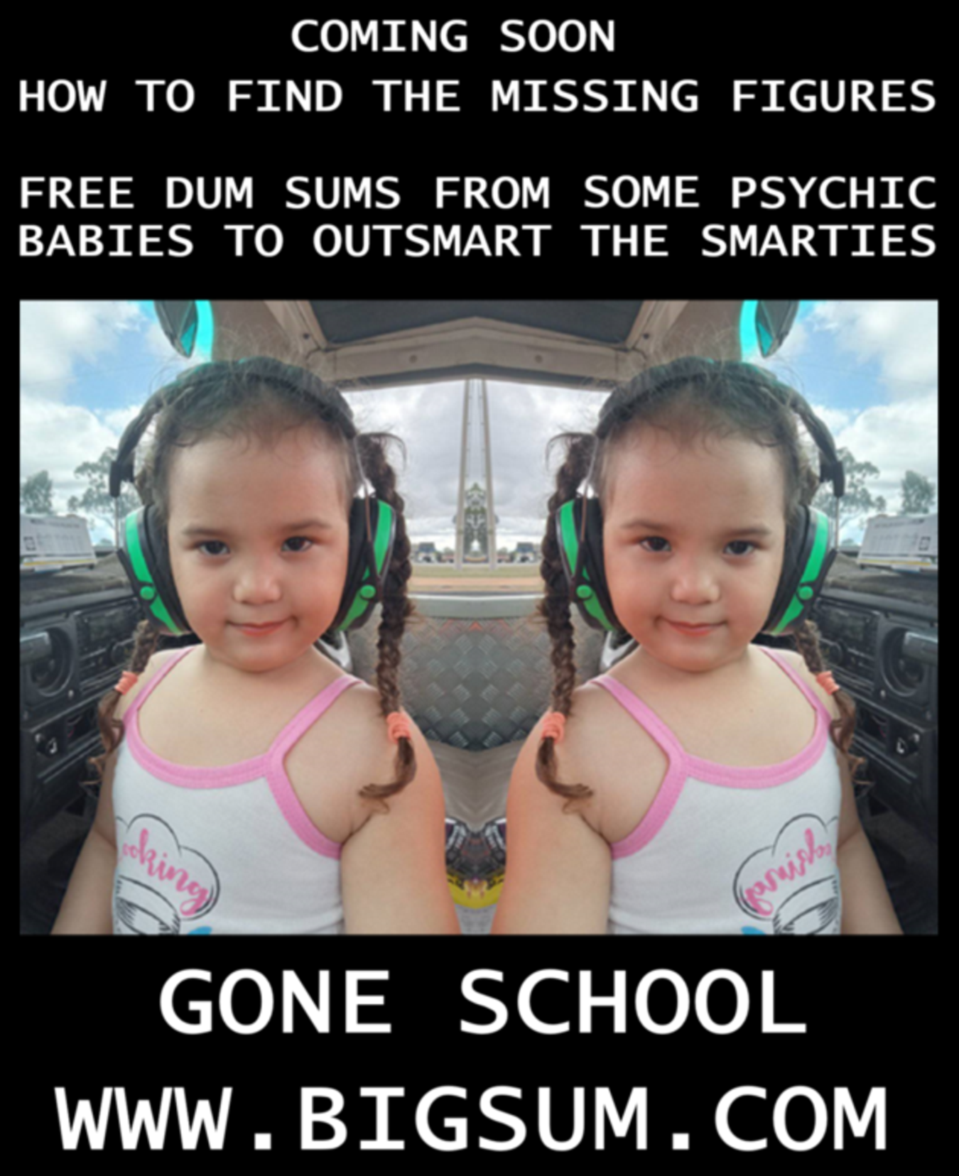 Impossible but true!....Nought year old babies from Nought School to demonstrate creating the 21 digit Dum Dum for the 30 digit Dum Sums, in the infinite  Big Sums, that teachers can't understand or create                                  coming soon